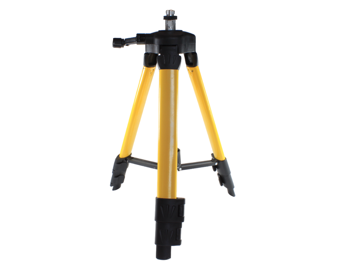 Штатив-тренога для лазерного уровня отличается высокой прочностью и малым весом. Изготовлен штатив из качественного и легкого алюминия. Лазерный уровень устанавливают на кронштейн с резьбой 5/8". У штатива прочные раздвижные телескопические ножки, ступенчатого выдвижения. Благодаря этому можно подобрать оптимальную высоту до полутора метров. Ножки можно выставить каждую на свою высоту, зажав фиксатором, что позволяет работать также на не ровной поверхности.